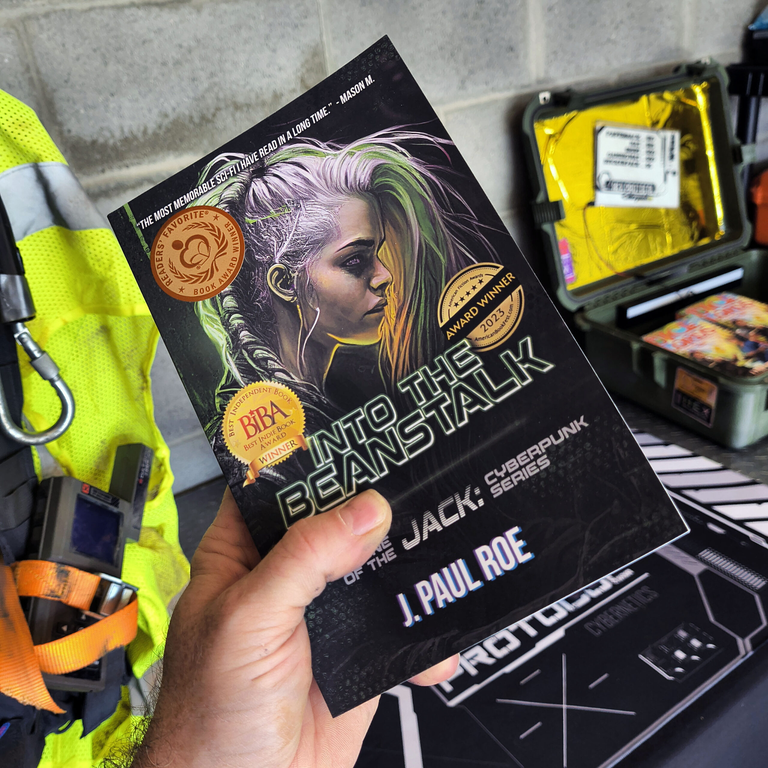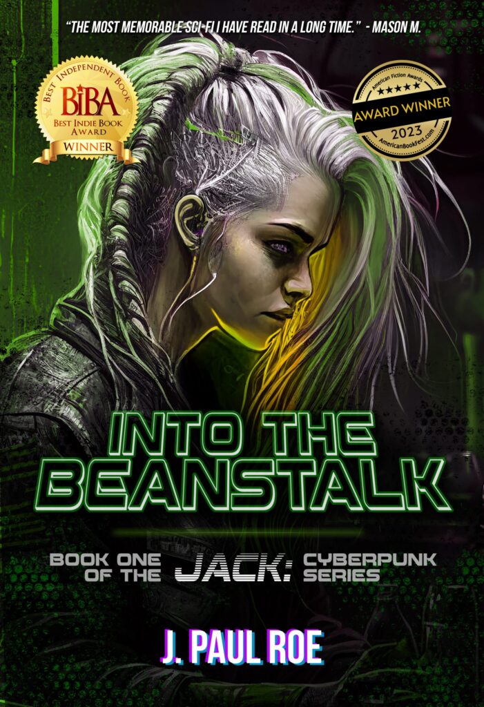 Action, suspense, and wit, presented in an accessible take on the genre. If you like complex worlds of near-future tech, dystopian struggle, and memorable characters, you’ll love Into the BeanStalk!